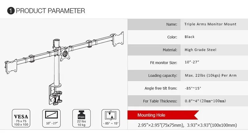 Triple Monitor Arms Full Motion Desktop Mount Stand Fit for Three LCD Screens Bracket Max Support 10KG per Arm MONITOR HOLDER